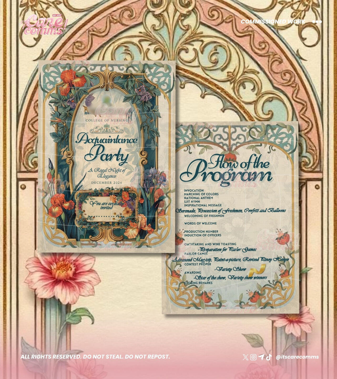 • The commissioner reserves the right to decline any client. PAYMENT TERMS • A 50% payment is required upfront to secure a slot. NO DOWN PAYMENT, NO SLOT.
